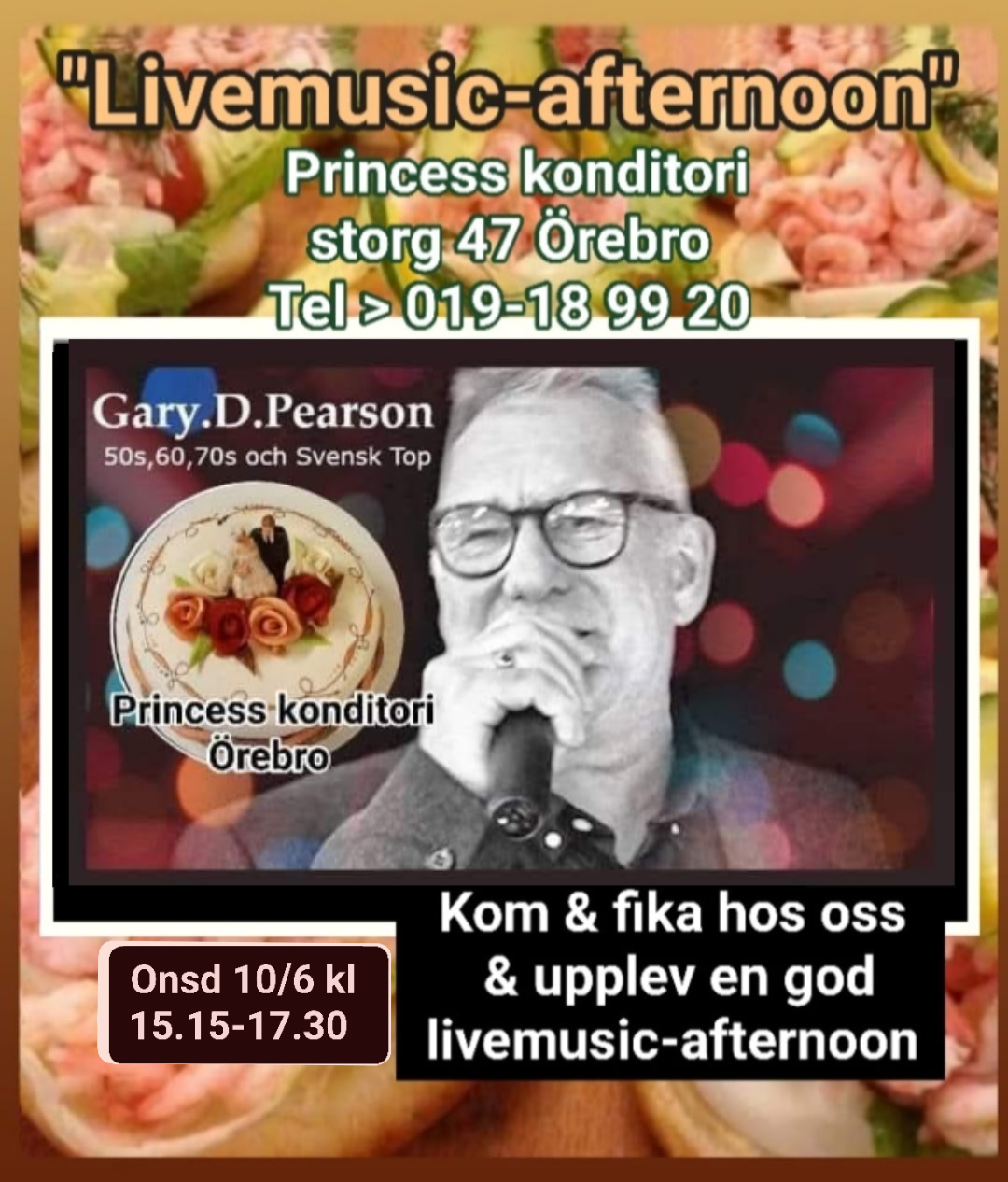 Gary .D. Pearson har en blandad repertoar av 50-60-70 tal och svensktopp mm.